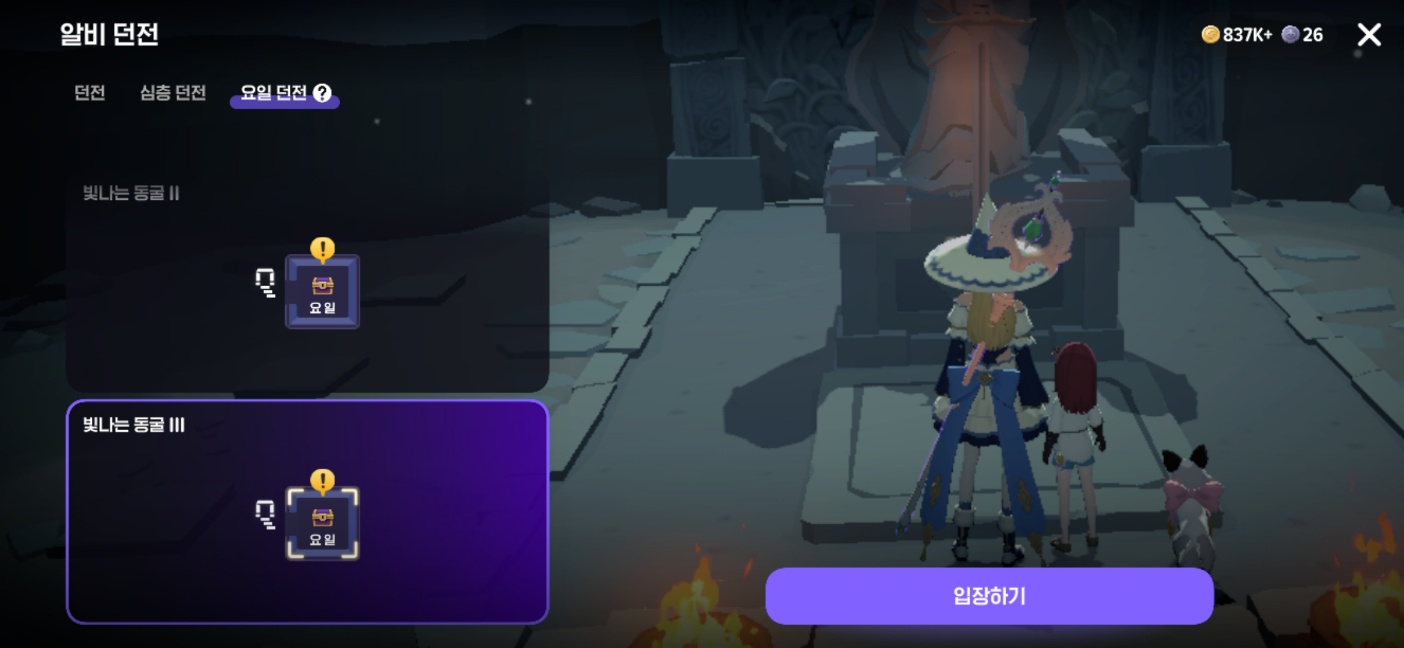 - 요일 던전: 아르바이트에서 확인 가능