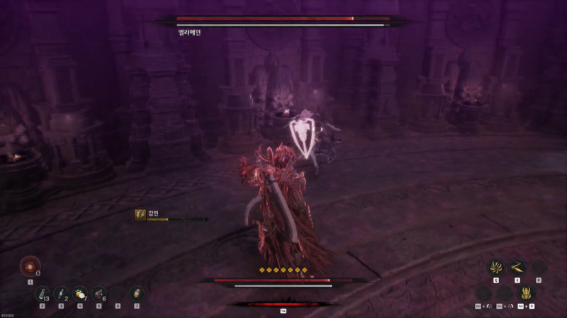 엘라메인은 단단한 방패를 들고 있어 전방 공격으로만 승부를 본다면 난이도가 상당히 높다. 후방 공격을 노린다면 보다 수월하게 공략할 수 있다. 대표적으로 창의 ‘그림자 잡기’ 스킬은 인간형 적의 후방을 쉽게 노릴 수 있는 스킬이다.