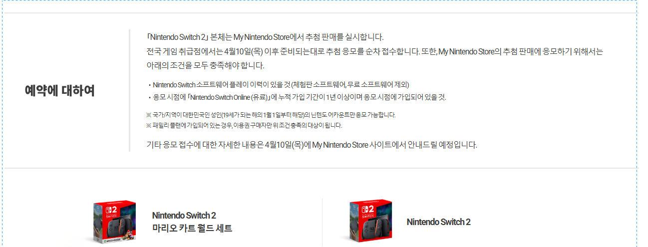 닌텐도스위치2 예약이 10일부터 일제히 시작된다.