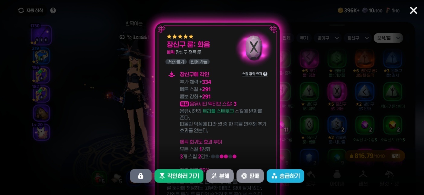 클래스별 고유 룬이 각인된 방어구를 교체하고 싶다면 마찬가지로 크래프팅으로 만들거나 미스틱 다이스에서 나온 것을 활용하는 것이 편하다.