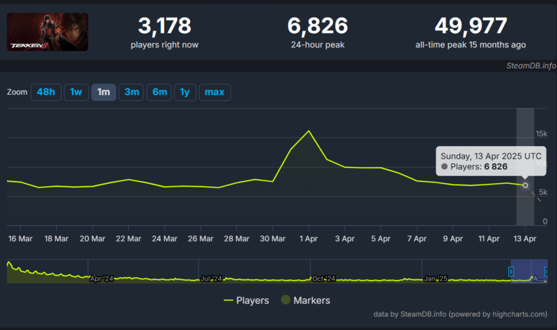 개발진의 향후 대처는 '철권' 시리즈의 생명력과도 연결될 수 있다. 철권은 격투 장르의 양대산맥 IP였으나, 이번 세대 경쟁에서 과도하게 밀리고 있다. '스파6'는 지난해 GOTY 후보에 이름을 올릴 만큼 높은 평가를 받았고, 지금도 스팀 유저 동시접속자만 3만 명을 넘는다. 오히려 갈수록 평균 접속자가 더 오르는 추세다.