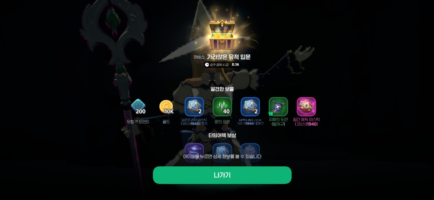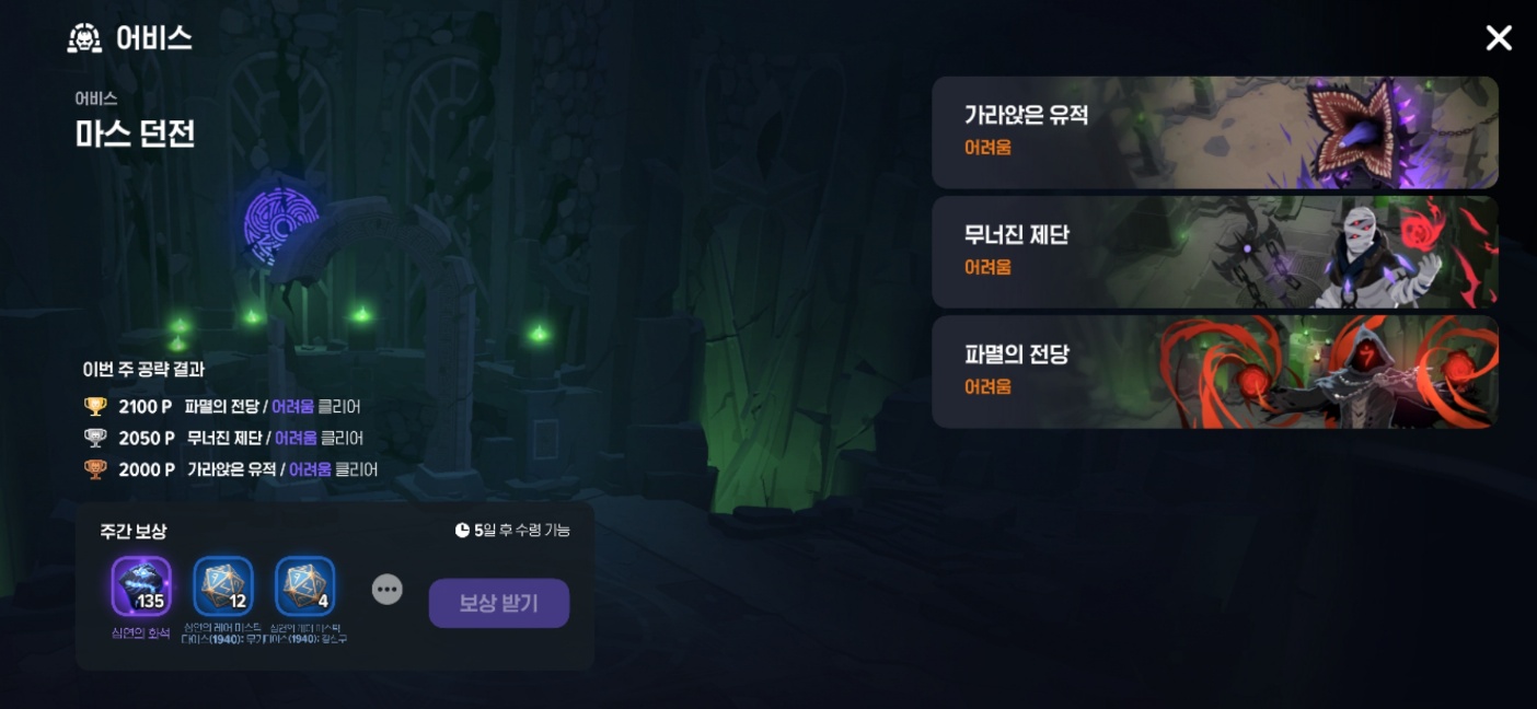 어려운 만큼 보상은 확실하다. 어비스는 처음 1회에 한해 10분 안에 클리어하면 타임 어택 보너스를 받고 다음 난도에 도전할 수 있게 된다. 어비스에 한창 도전 중인 유저는 10분 안에 클리어하는 것을 일차적 목표로 삼으면 된다.