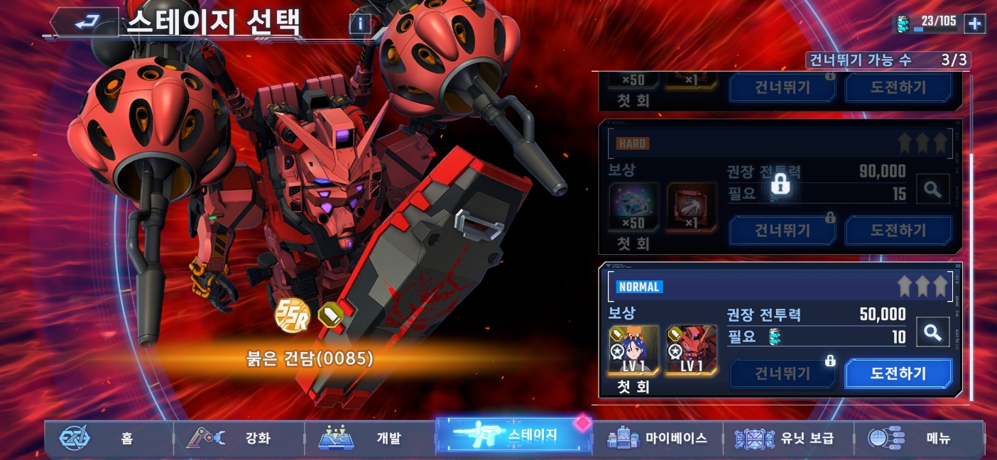 빠르고 쉽게 클리어되는 초반 구간 덕분에 몰입도도 높았다. 하지만 초반부를 지나자 금방 어려워지기 시작했다. 특히 22일 시작한 '붉은 건담(0085)'이 출연하는 '강적등장 이벤트'는 상상 이상의 난도를 보여준다는 평이다.