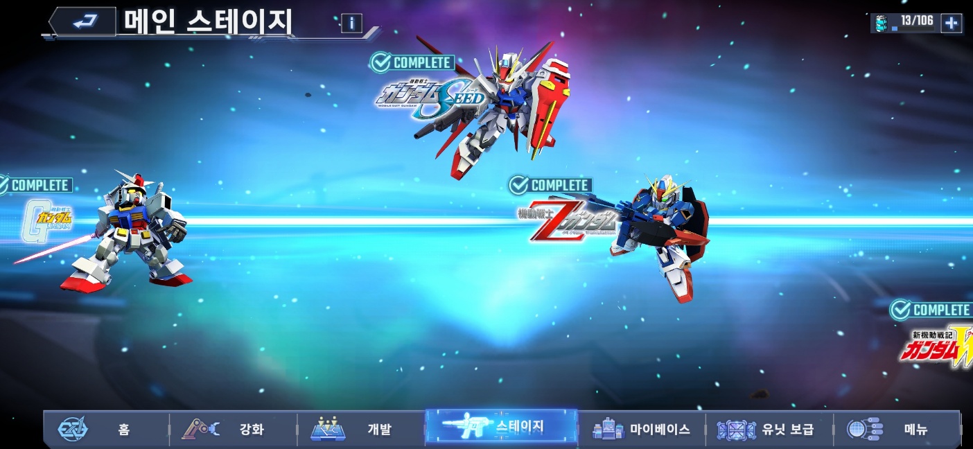 일단 초심자라면 건담ZZ까지 스토리를 클리어하고 SSR 풀돌을 노리는 것이 효율적이다. 특히 건담SEED를 제외한 네 스토리는 기체 개발도를 완성하면 상당히 좋은 기체를 제공한다. 이를 잘 키우면 엔드 콘텐츠인 이터널 로드 클리어에 도움 되니 이를 첫 목표로 하는 것이 좋다.
