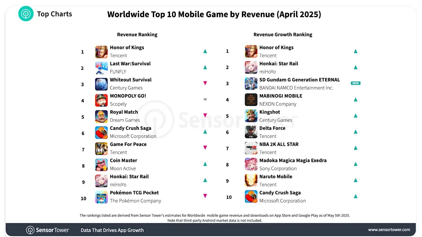 스타레일은 4월부터 2주년 이벤트를 시작했다. 해당 이벤트를 통해 다양한 재화와 강력한 캐릭터를 무료로 제공했다. 또한, 상당히 강한 캐릭터를 픽업으로 준비해 신규유저 유입을 끌어냈다는 평이다. 이런 전략을 통해 센서타워에서 공개한 4월 글로벌 매출순위에서 9위에 오르는 성과를 낼 수 있었다. 이에 더해 수익성장률에서는 2위에 오르는 등 4월에 두드러진 성과를 보였다.