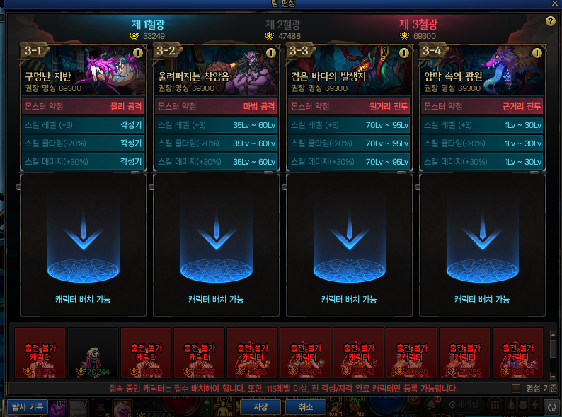 ‘피 흘리는 철광’은 여러 캐릭터를 조합해 연속 던전을 공략하는 주간 콘텐츠다. 3개의 난이도에 각 4개 던전이 있어 총 12개의 던전으로 구성돼 있다. 1~3 철광은 난이도의 격차가 크고, 등장하는 몬스터는 캐릭터 특성에 따라 유불리가 다르게 작용한다.