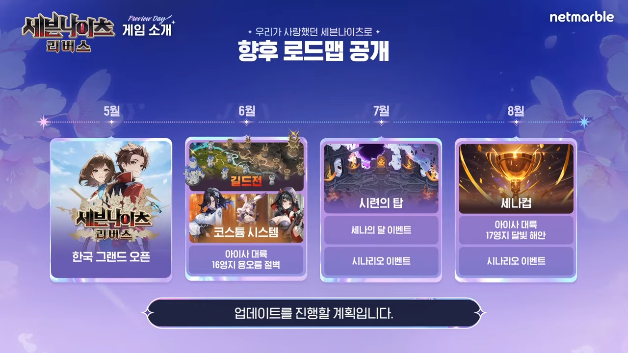 현재 알려진 것으로는 6월 길드전, 7월 시련의 탑이 추가될 예정이다. 서둘러 원작을 따라잡지 않기 때문에 신규 유저들도 충분히 적응할 수 있을 것으로 기대된다.