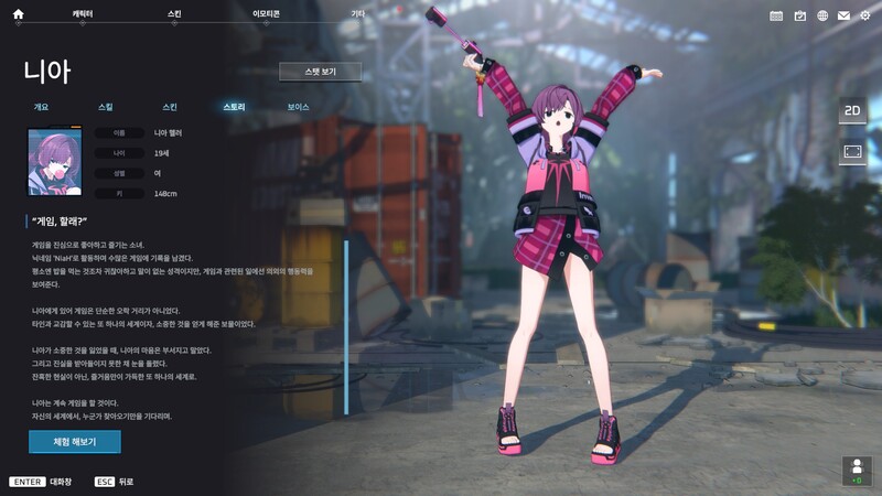 니아는 작정한 듯 게임 관련 밈과 패러디를 함축한 캐릭터다. 권총을 무기로 사용하는 원거리 스킬 증폭 딜러로, 직업부터 게이머로 표기되어 있다. 게임 특징답게 생각보다 어두운 배경 스토리도 지녔지만, 화제를 불러일으킨 요인은 결국 유쾌한 패러디다.