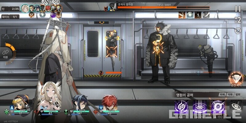 전투 퀄리티나 시스템은 일반적인 4인 파티 턴제 전투를 따른다. 일반 스킬 2개와 필살기까지 3개 스킬이 캐릭터마다 존재하고, 유저가 순간 지시나 지원 캐릭터 활용을 통해 변수를 줄 수 있다. 현재 서브컬처 게임들 기준에서 특출나진 않다. 하지만 구멍난 곳 역시 없다.