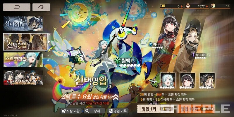 칸나기, 월백 같은 초기 버전 고성능 6성 캐릭터를 데려오는 데 하등 문제가 없고, 픽업 캐릭터인 용정 역시 '픽뚫'을 감안해도 얻기 어렵지 않다. 용정은 첫 픽업답게 적절한 서포팅과 함께라면 독보적인 보스전 딜량을 자랑했다.