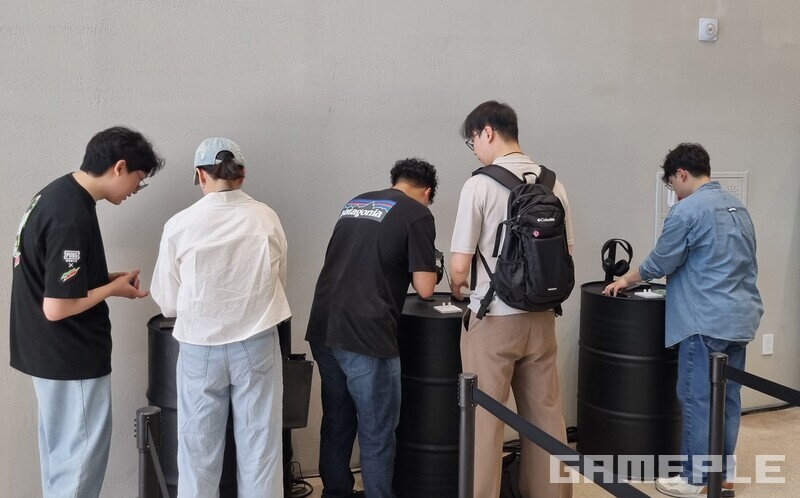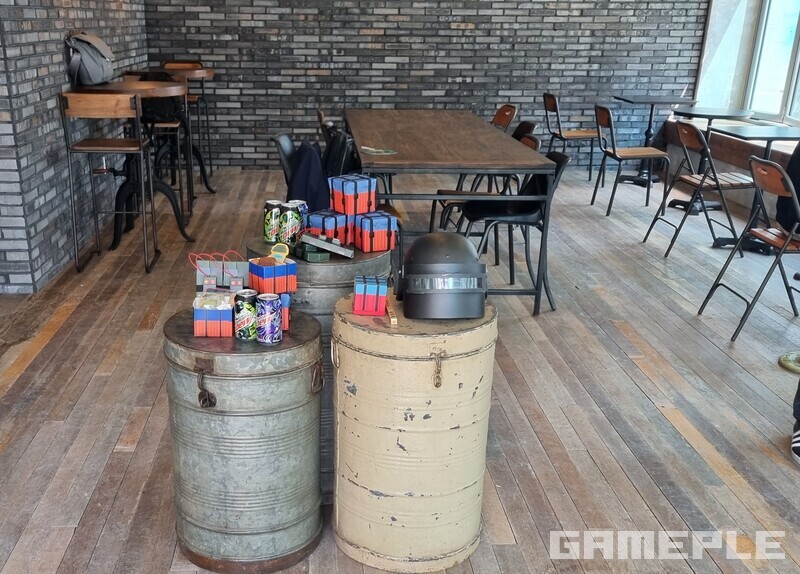 야외부스를 지나 정면 건물 안으로 들어서면 ‘모배 시연존’이 등장한다. 모배 시연존에서는 안내에 따라 배틀그라운드 모바일의 신규 테마 모드를 직접 체험할 수 있다. 또 다른 건물에는 인게임 분위기를 살린 펍지 카페가 있다.