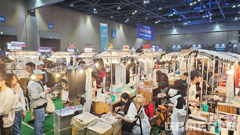 2025 플레이엑스포 역시 이터널 리턴 부스는 인산인해를 이뤘다. 그리고 행사를 상징하게 된 공간이 또 있다. 23일부터 운영을 시작한 '루미아 야시장'이다. 팬들의 활발한 2차 창작 활동을 지원하는 플리마켓 이벤트로, 이것 때문에 방문하는 관람객도 상당수에 다다를 만큼 대표 프로그램으로 자리잡았다.