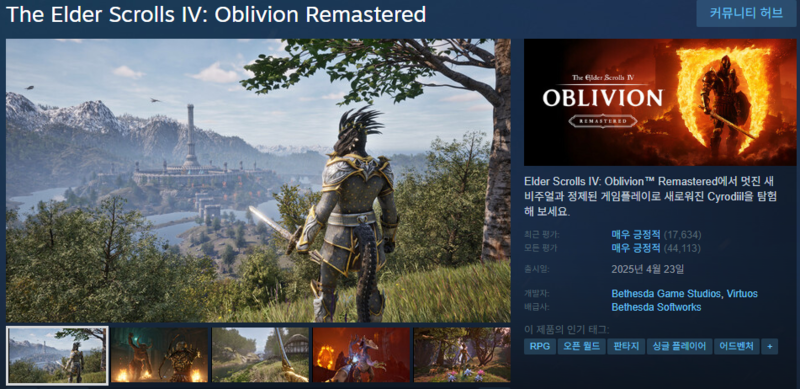 지난달 국내 게이머들 사이에서 큰 논란을 일으켰던 ‘엘더스크롤 4: 오블리비언 리마스터’의 한국 지역 차단 사태가 마침내 해소됐다. 베데스다가 5월 28일 한국 지역에 대한 스팀 지역락을 해제하고 정식 판매를 시작했다. 이제 한국에서도 ‘엘더스크롤 4: 오블리비언 리마스터’를 플레이할 수 있게 된 것이다.