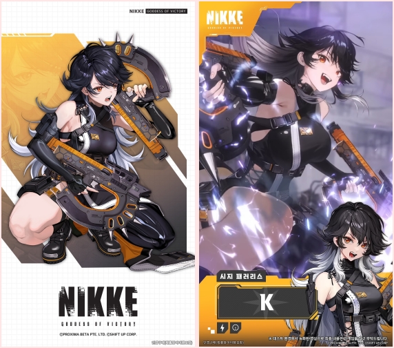 시프트업 '승리의 여신: 니케'가 29일 업데이트를 통해 신규 니케 'K'를 추가했다. 'D'와 같이 암살 전문 스쿼드 시지 패러리스 소속으로, 출시 버전 포함된 메인 스토리부터 등장한 바 있다. 그러나 플레이어블 추가가 언제 될지 기약이 없다가, 약 2년 1개월 만에 직접 사용이 가능하게 됐다.