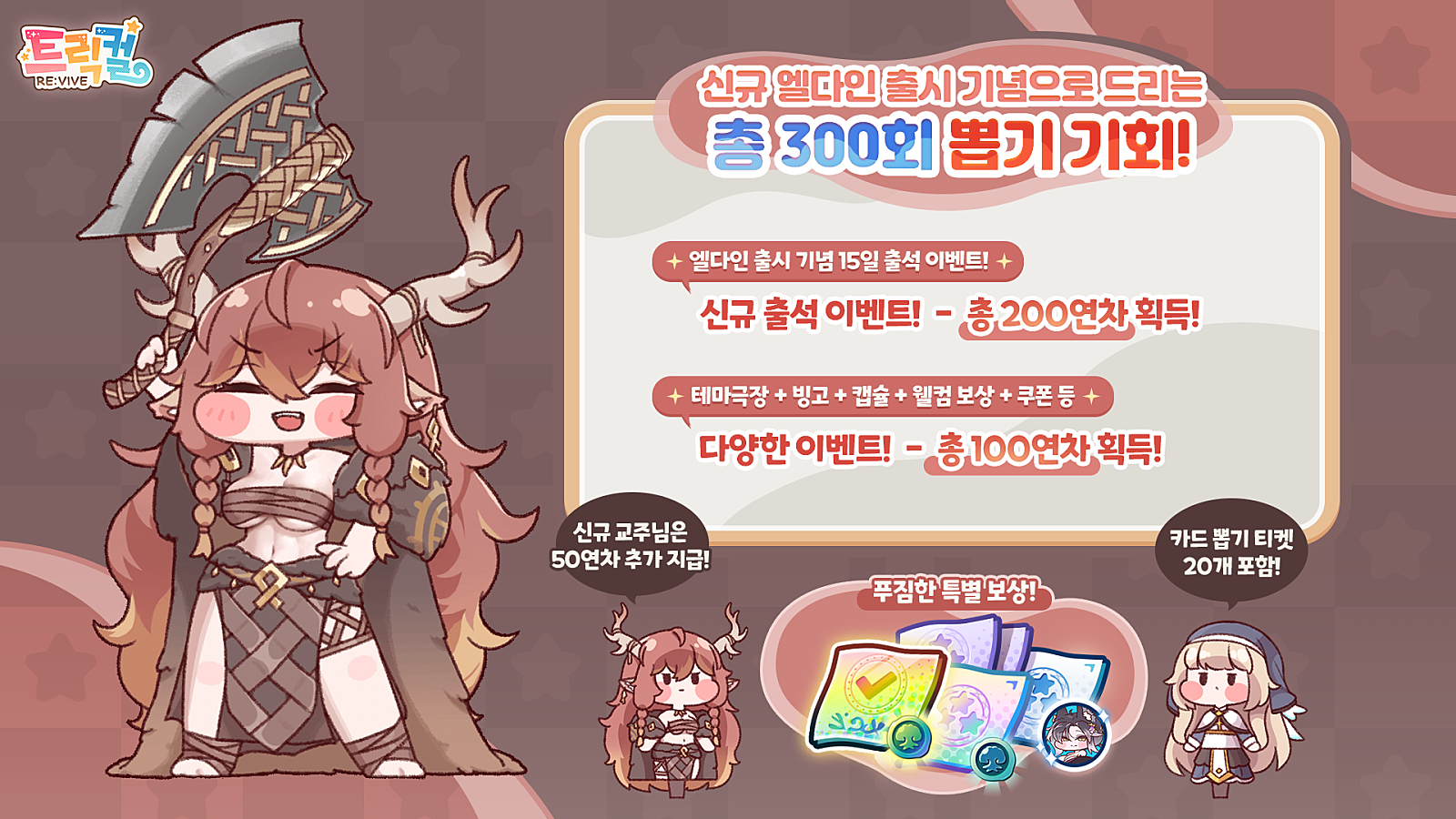에피드게임즈는 자사에서 개발한 '트릭컬: 리바이브'에서 5일 신규 엘다인 캐릭터인 '디아나(왕년)'의 출시를 기념해 모든 유저에게 다양한 재화를 제공한다. 특히 이와 함께 진행하는 출석이벤트인 '티그의 수련'을 통해 다른 캐릭터에 비해 강한 능력치를 가진 엘다인 캐릭터 둘을 얻을 수 있다. 기존 유저는 물론이고 트릭컬에 흥미가 있던 신규 유저들에게 절호의 기회라는 평이다.