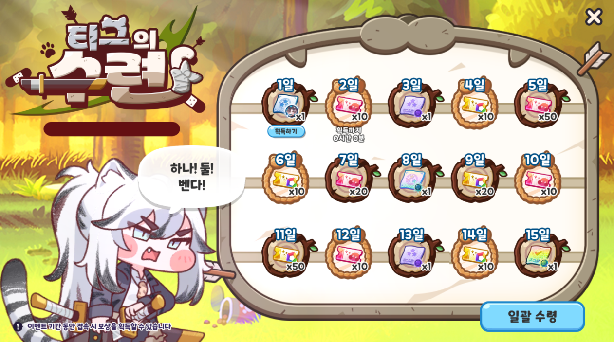 - 로그인 4일 차에 제공되는 엘다인 선택권으로 '비비' 선택 (신규 유저 한정)