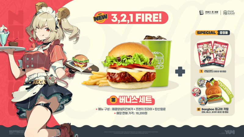 이번 콜라보의 핵심은 프랭크버거의 인기 메뉴에 젠레스존 제로의 매력을 더한 콜라보 한정 세트 메뉴다.