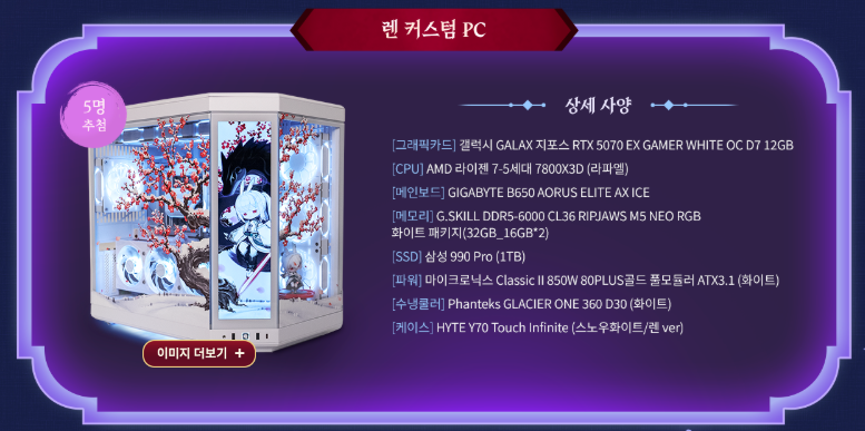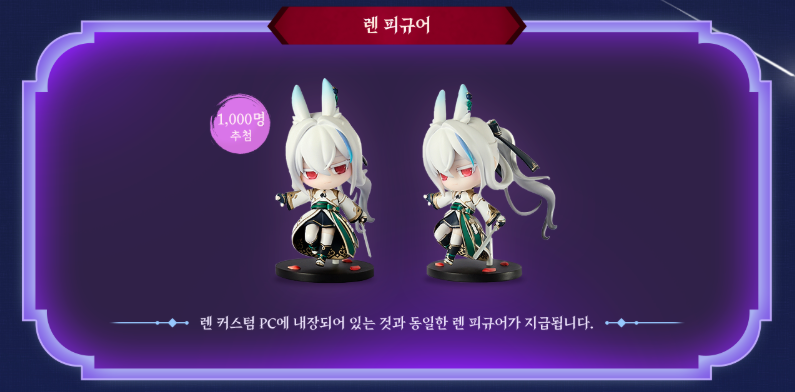 메이플스토리가 준비한 특별 굿즈는 ‘렌 피규어’와 ‘렌 커스텀 PC’ 2종으로, 7일 ‘어셈블’ 쇼케이스를 통해 공개됐다. 해당 굿즈들은 추첨을 통해 선정된 유저들에게 지급된다. 당첨 인원은 렌 커스텀 PC 5명, 렌 피규어 1,000명이다.