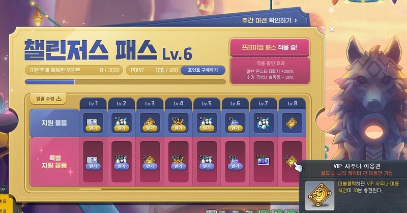 특히 프리미엄 패스까지 추가 구매하면, 일반 몬스터 공격 시 데미지 200% 증가, 추가 경험치 획득량 20% 증가 효과를 얻는다. 이에 더해 압도적인 개수의 보상 아이템과 270레벨 이하 구간에서 1레벨을 올려주는 ‘초월 성장의 비약’까지 획득할 수 있다. 이를 통해 성장 속도를 압도적으로 끌어올려 초중반 육성의 답답함을 크게 줄일 수 있다.