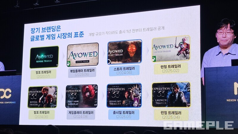 반면 해외 게임은 몇년 전부터 계획적으로 트레일러를 공개한다. 5~6년 전부터 시작하는 경우도 흔하며, 화제가 된 '클레르 옵스퀴르: 33원정대' 같은 중규모 게임 역시 1년 전부터는 트레일러를 내왔다.