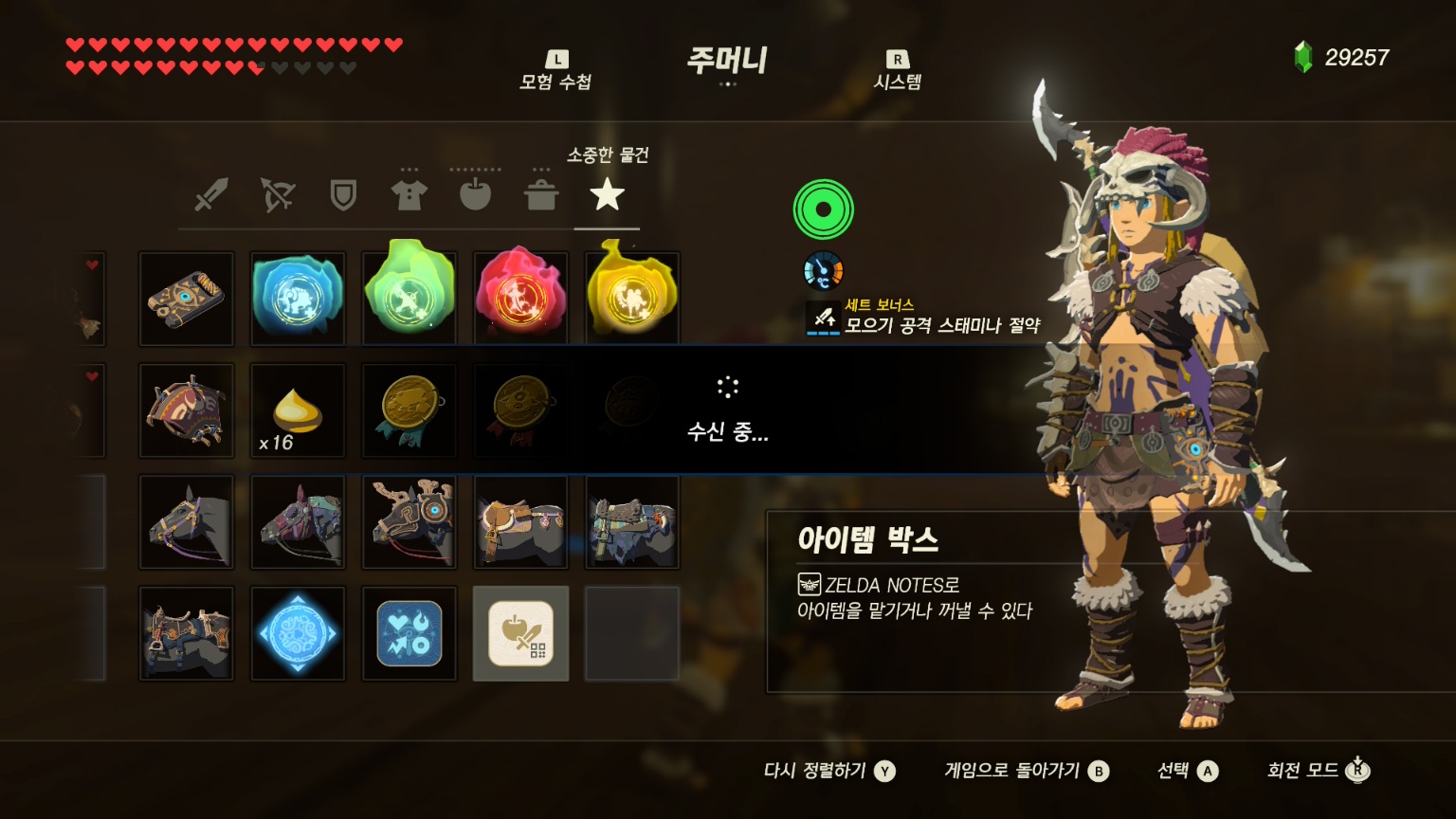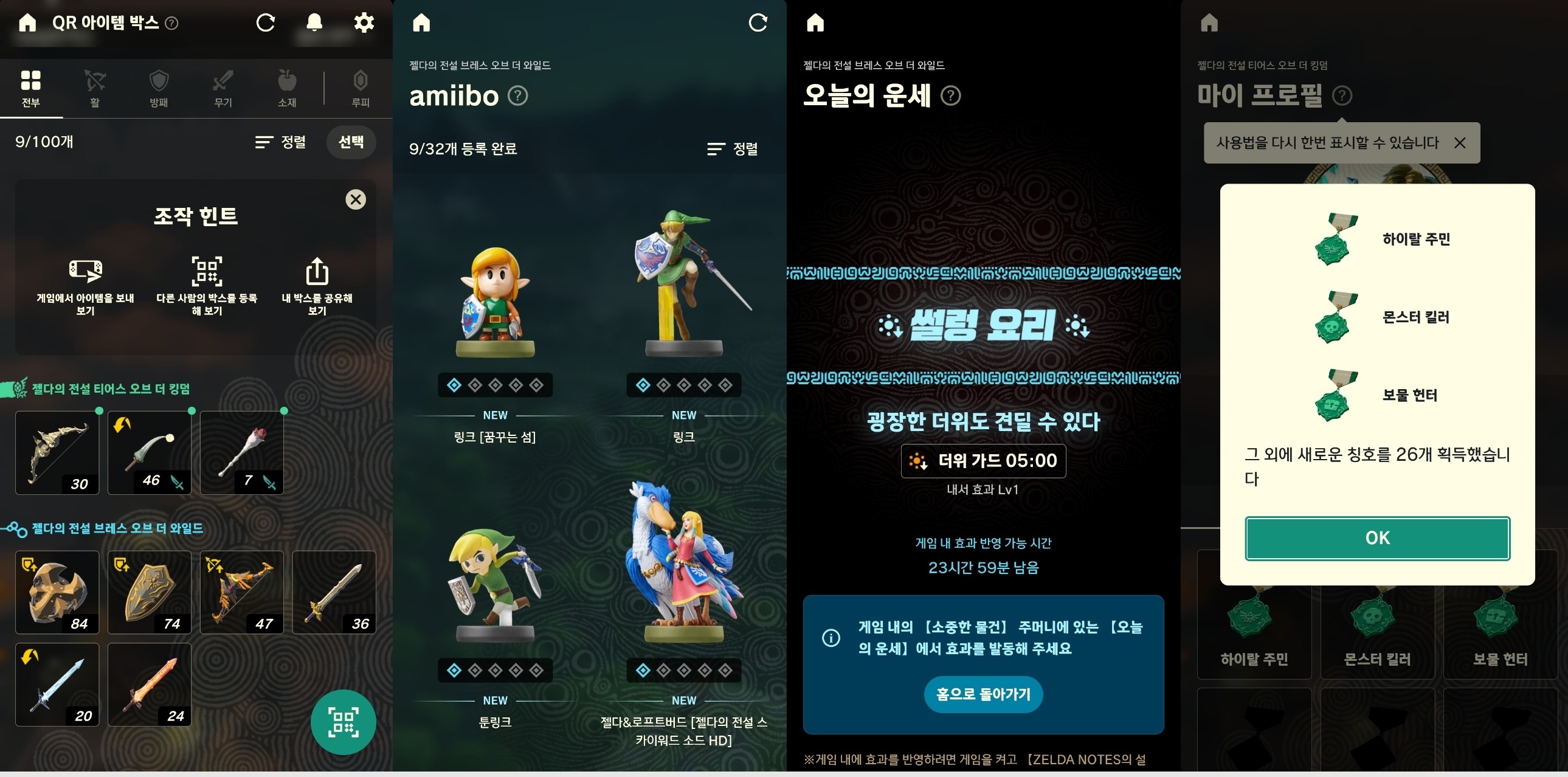 또한, 2회차에 도전하는 유저를 위해 스위치2에디션에는 추가 세이브 파일을 제공한다. 하지만, 다시 강화 아이템 등을 모으는 것이 귀찮은 유저가 있을 수도 있다. 이를 위해 추가된 것이 QR아이템 박스다. 앞서 소개한 대로 유저는 이 기능을 통해 아이템을 젤다노트에 저장할 수 있다. 그리고 이를 꺼내는 것은 같은 세이브 파일이 아니어도 상관없다. 심지어 다른 게임에서 꺼내 올 수도 있기 때문에 초반만 지나면 고급 아이템을 꺼내 사용할 수 있게 된다.