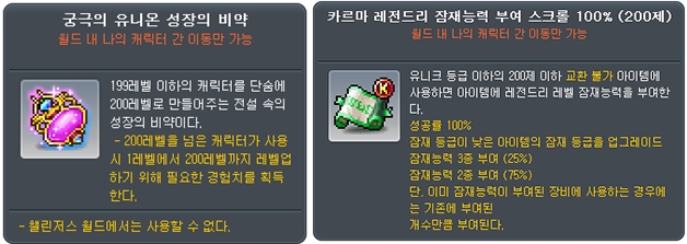 또한 시그너스 기사단 캐릭터를 육성하면 여제의 축복 효과로 공격력과 마력을 증가시킬 수 있으며, 육성이 귀찮다면 제로 캐릭터를 생성만 해도 공격력과 마력 +12 효과를 얻을 수 있다. 만약 신규 직업 ‘렌’을 육성한다면, ‘[렌] 소문’ 퀘스트를 통해 공격력/마력 4% 버프 스킬을 얻을 수도 있다.