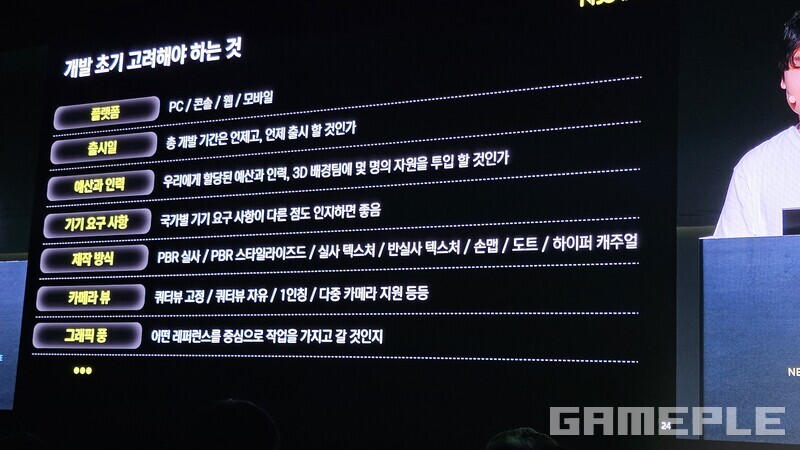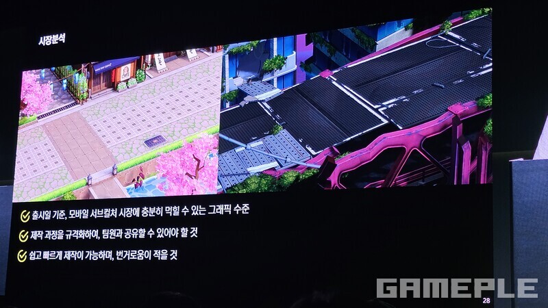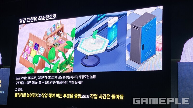 2018년에 처음 제작한 배경은 지금도 그대로 사용되고 있다. 초기는 열악했다. 2년 남짓 기간이 남았고, 인력은 부족했다. 서브컬처 유행 시기도 아니었다. 그래서 핵심 가치와 구조화를 고민했다. 3D를 이용해 입체적으로 작동하게 하고, 엄폐물로 재미를 주는 게임 가치를 팀원과 공유하며 쉽고 빠르게 제작하는 방법을 찾았다.