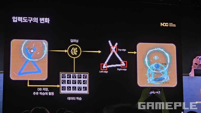 가장 먼저 접근한 방식은 입력도구 변화였다. AI를 통해 바꾼다면 새로운 경험이 될 거라 생각했다. 손가락 제스처를 이용한 입력을 넘어 한 번 제스처에 여러 의미를 담을 수 있지 않을까 했다. 비록 피로감과 유저 학습 해결에 많은 코스트가 들어 포기했지만 "앞으로 가능성이 있는 분야"라고 해석했다.