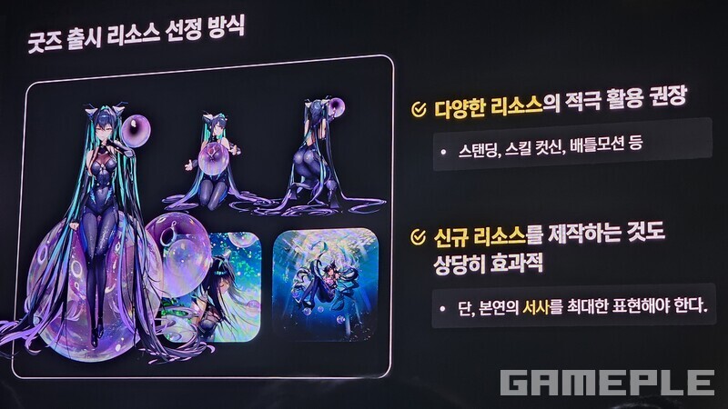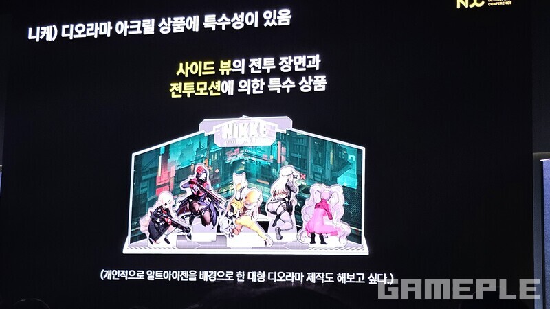 또 '니케'는 디오라마 아크릴 상품에 게임 뷰와 비슷한 구성이 가능했고, 다른 게임에 비해 굿즈가 풍부해 보이게 할 수 있었다. 우리 게임에 어울릴 만한, 우리만의 굿즈를 고민하는 것이 중요하다.