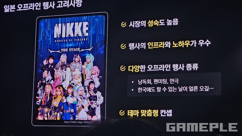 일본은 게임 외 IP 확장이 매우 활발한 나라다. 일상적인 가게에서도 다양한 서브컬처 콘텐츠와 광고를 볼 수 있고, 그만큼 축적된 노하우도 많다. 이미 인프라가 형성된 만큼 IP 이해도가 높은 에이전시만 찾으면 행사가 매우 수월하게 진행된다.