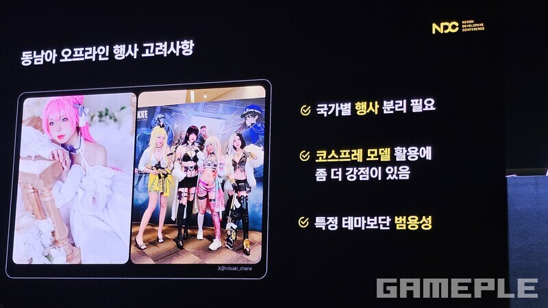 동남아시아 지역은 권역 내 이동이 쉽지 않아 국가별로 나누어 오프라인 행사를 여는 것이 좋다. 2차 창작 특징은 코스프레 의상 표현이 상대적으로 개방적이라는 것. 이를 활용하면 동남아만의 IP 구축에 강점이 있을 것으로 생각되어 우리도 여러 방법을 고민 중이다.