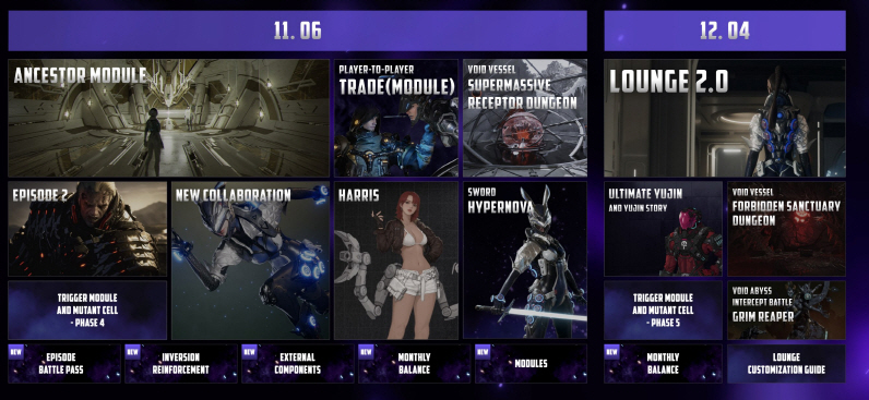 10월에는 액션의 재미를 즐길 수 있는 ‘검’이 추가된다. 총기류로만 전투할 수 있었던 기존 방식에 ‘검’을 추가하여 적과의 근접전을 병행하며 한층 업그레이드된 액션을 경험할 수 있다. 또, 11월에 선보일 신규 ‘계승자’ ‘해리스’도 공개한다. 작업반장 NPC ‘해리스’가 기계 팔을 자유롭게 활용하는 스킬 공격형 ‘계승자’로 합류할 예정이다.