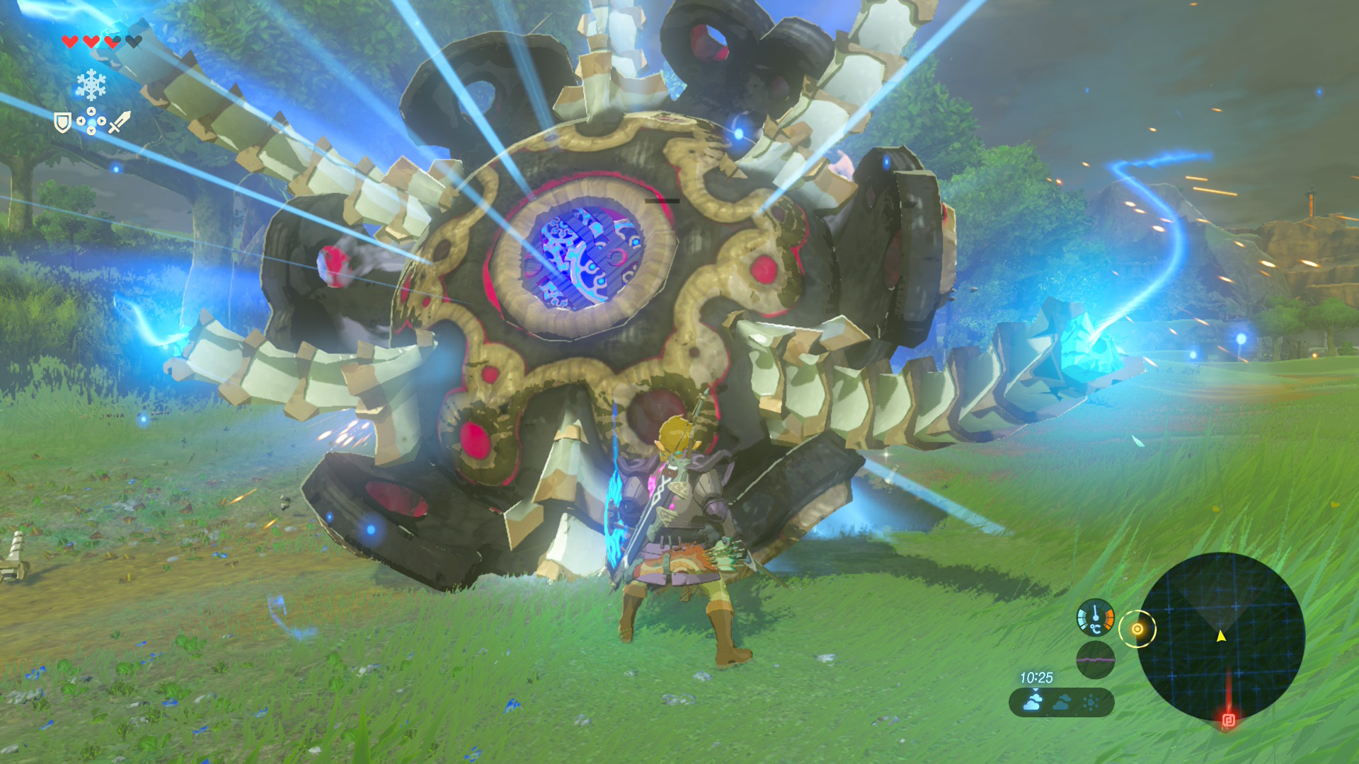 갑옷은 하이랄 성 근처에 있다. 여기도 가디언이 있기 때문에 주의해야 한다. 주둔지 폐허보다는 가디언을 피하기 쉬워서 자신 있다면 가디언 무기 없이 도전해 볼만 하다.