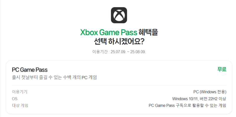 혜택을 받기 위해서는 네이버 멤버십에 가입하고 게임패스 이용권을 선택한 후 계정 연결을 하면 된다. MS 엑스박스 계정과 연동한 뒤 엑스박스 PC 앱에서 사용이 가능하며, 앱은 공식 홈페이지에서 다운로드할 수 있다.
