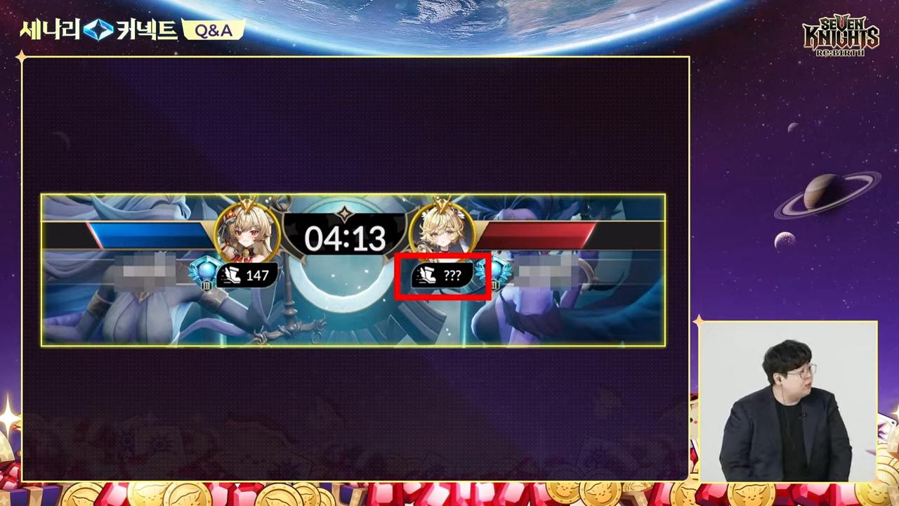결투장에서 상대방 속공을 표시하지 않는 이유로는 전투에서 굉장히 중요한 전략 요소이기에 높은 등급에서는 노출하지 않을 생각이라고 강조했다. 재화 부족은 "이미 개선을 몇 번 진행했지만, 아직 부족하다는 점을 알고 있다"며 "모든 모험 영지에서 영웅 드랍 확률을 상향할 예정이며 이는 7월 중 반영할 것"이라고 전해 호응을 끌어냈다.