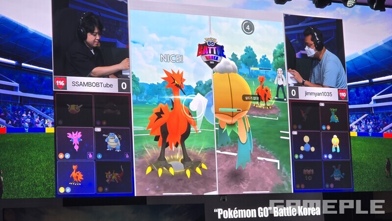 경기는 막상막하로 흘렀다. '시작이 반'이라는 말이 아주 어울리는 포켓몬고이기에 선두를 잘 잡은 mungmee선수에게 유리하게 게임이 흘러갔다. 서로 상성과 공격 타이밍을 정확히 계산하면서 교체하고 실드를 사용하는 모습에서, 결승전은 역시 다르다는 반응이 터져나왔다.