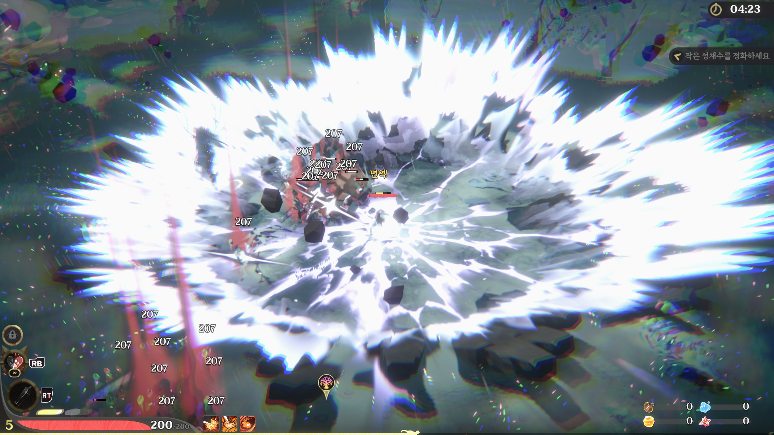 대신 적들도 적극적으로 공격해 온다. 탄막이나 돌격뿐 아니라 다양한 패턴으로 공격해 오고 유저는 이에 대응해야 하므로 액션 비중이 생각보다 더 크다. 주무기로 전투하다 보면 평범한 쿼터뷰 액션 게임이라는 생각이 들 정도다.