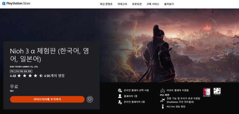 인왕3, PS스토어에서 7월 30일까지 한정 배포