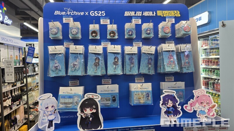 넥슨에서 서비스하는 '블루 아카이브'가 16일부터 GS25와 콜라보를 진행했다. 이번 콜라보를 맞이해 GS25는 '블루 아카이브'의 밀레니엄 학생회 세미나의 캐릭터를 모델로 하는 상품 제공을 시작했다. 또한, 일부 특별 매장에서는 17일부터 콜라보 굿즈를 판매해 팬들의 관심을 모았다. 이에 17일 오전, 특별 매장 중 하나인 뉴안녕인사동점을 찾아봤다.