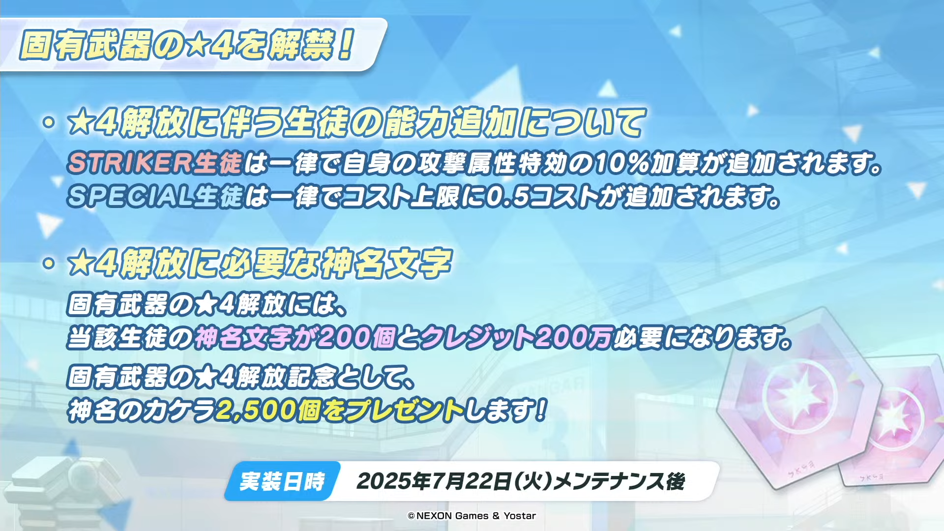 넥슨게임즈가 개발한 '블루 아카이브' 일본 서버가 4.5주년 업데이트에 들어간다. 업데이트 관련 정보는 19일 방송을 통해 공개했다.