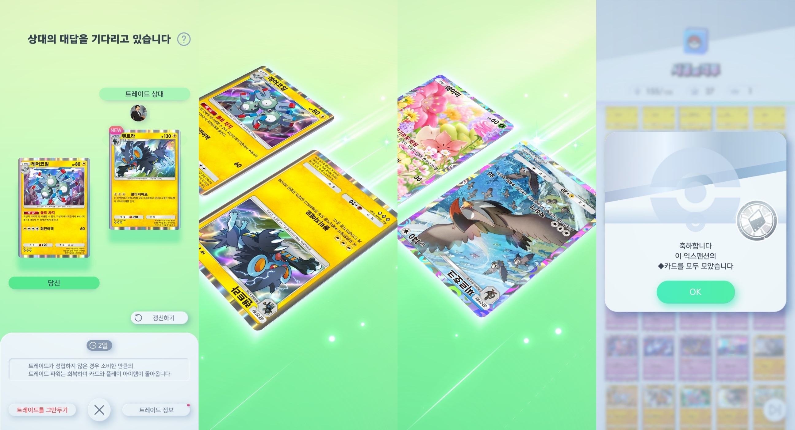 대신 고 레어 카드의 퀄리티가 매우 좋아 이를 노리는 유저들이 대량으로 카드를 뽑고 남는 카드들이 모이는 상황이다. 이를 효율적으로 처리하고 다른 유저들과 교류하는 소셜 시스템은 포켓몬스터 시리즈가 강조해 온 요소다. 포켓에서도 이런 문화가 정착할 수 있을지 팬들의 관심이 쏠리고 있다.