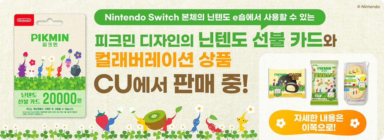 퍼스트 파티 타이틀 가운데 가장 눈에 띄는 작품은 '피크민4'다. 최근 피크민 시리즈는 국내외에서 꾸준히 인기를 끌고 있으며, 닌텐도는 이번 세일과 함께 편의점 브랜드 CU와의 협업도 진행한다. 7월 31일부터는 피크민 디자인이 적용된 선불 카드와 콜라보 제품도 판매될 예정이다.