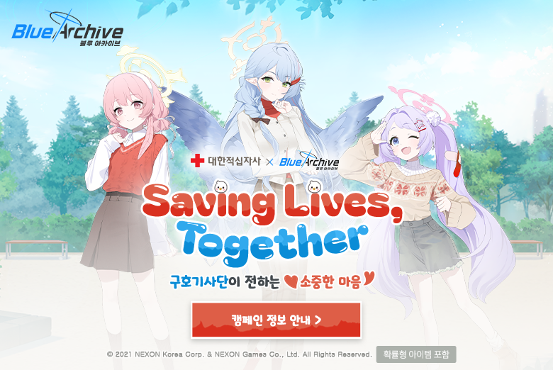 넥슨의 서브컬처 게임 '블루 아카이브'가 대한적십자사와 함께하는 캠페인 ‘Saving Lives, Together!’의 일환으로, 11일부터 새로운 헌혈자 전용 굿즈를 전국 헌혈의 집에서 제공한다.