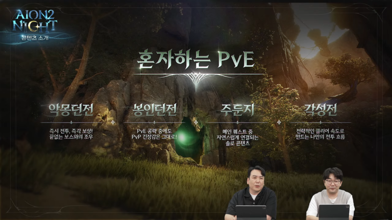 8일, '아이온투나잇' 라이브 방송에서 커마, PVE 콘텐츠 시연