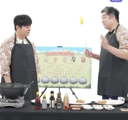 이들은 돈까스도 평범하게 만들지 않고 재료와 소스, 토핑 등을 사다리타기를 통해 결정했다. 다행히 기본 재료는 좋은 것이 걸려 대표의 조리 솜씨를 유감없이 발휘할 수 있었다. 하지만, 토핑에는 별사탕, 샐러드에는 생마늘, 소스에는 불닭마요가 걸리는 등 먹는 사람을 걱정하게 만드는 결과물이 탄생했다.