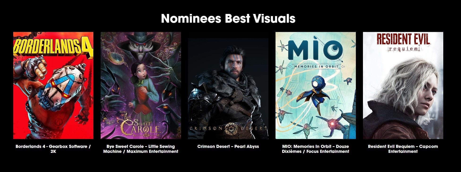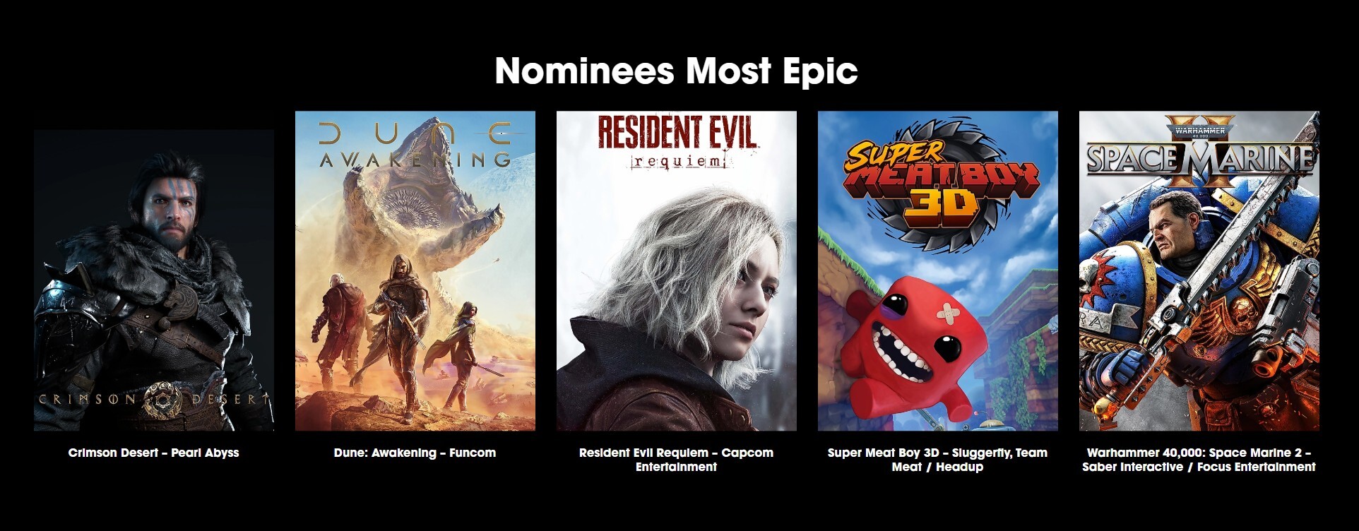 최고의 비주얼은 게임의 뛰어난 그래픽과 시각적 임팩트를 준 게임, 에픽은 장대한 내러티브와 강렬한 게임플레이로 인상을 준 게임이다.