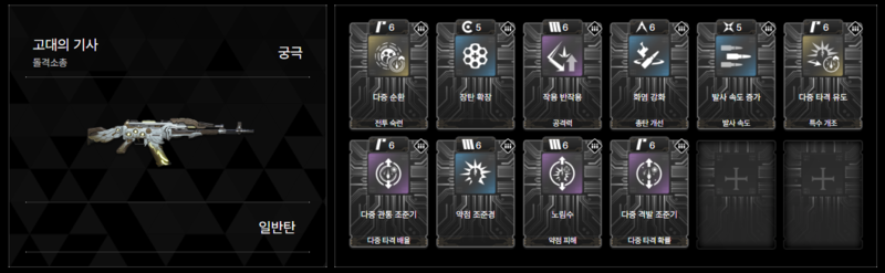 그중에서도 특히 ‘고대의 기사’ 무기와 결합한 빌드는 월크래셔 공략의 정석으로 자리 잡았다. 고대의 기사는 공중에서 재장전 시 체력을 회복하는 ‘부유’ 효과와 공중에서 다중 타격 시 배율이 증가하는 ‘속죄’ 효과를 부여한다. 비행 딜러인 세레나와의 궁합이 특히 완벽해 세레나 전용 무기라고 불린다.