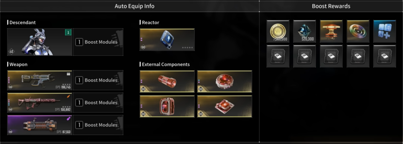 부스트 업에서 얻는 보상만으로도 부스트 패스를 올리기 위한 미션, 신규 시즌 콘텐츠 참여를 위한 준비가 모두 가능하다. 게임 시작과 함께 연결되는 퀘스트를 수행하고 시그마 섹터 등 콘텐츠에 입장하기만 해도 엔드 콘텐츠까지 도움이 될 보상을 얻을 기회다.