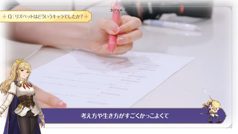 가디스오더에 대해 카게야마 리사 성우는 "리즈벳과 동료들은 물론이고, 심지어 적들까지도 매력적인 캐리터가 많이 등장하는 게임"이라고 소개했다. 그리고 "픽셀 그래픽도 정말 귀엽고, 태그 액션 픽셀 RPG답게 멋진 장면이 많이 준비되어 있으니 그 부분에 주목해달라"며 기대감을 전했다.