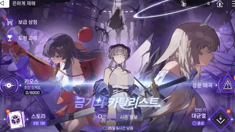 일러스트 옆에 나타난 두 캐릭터는 전투원 '치즈루', '세레니엘'이다. 은하계 재해 스토리에서 출연하며, 이번 시즌 중반기와 후반기에 등장할 예정이다. 유키부터 시작해 이렇게 3종 캐릭터가 3부작 스토리를 통해 차례대로 시즌 픽업이 될 것으로 보인다.